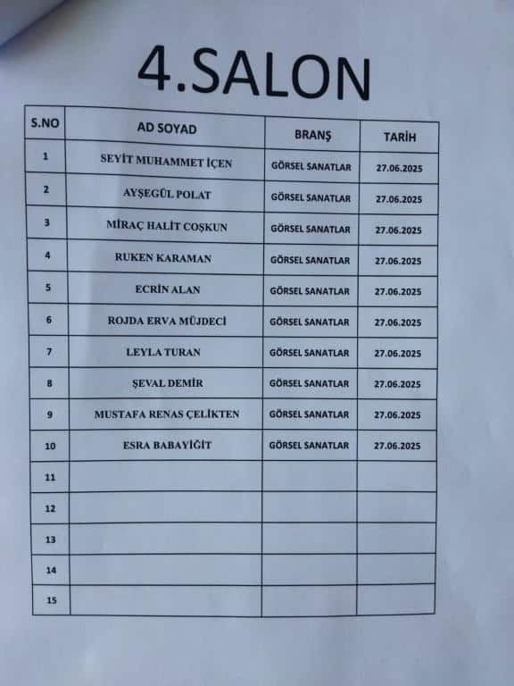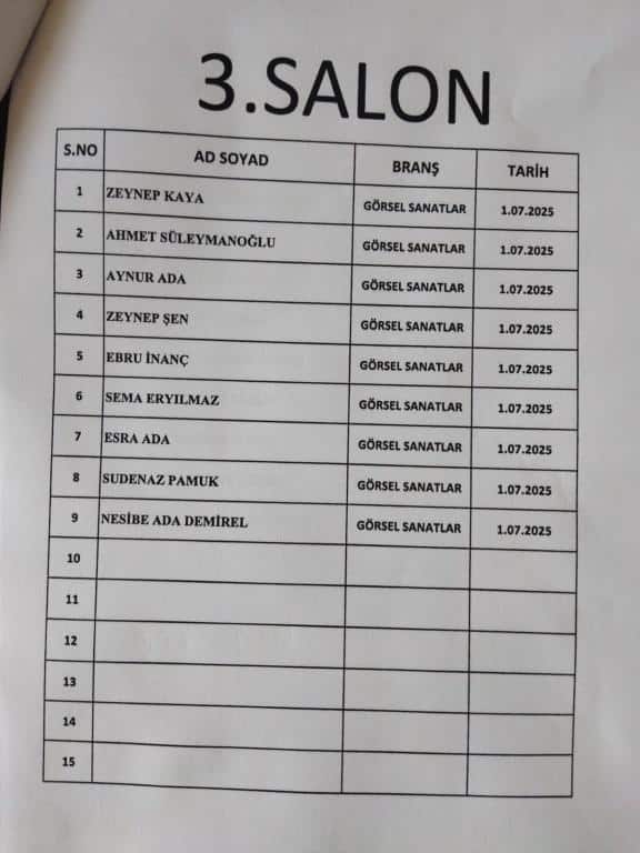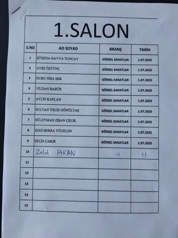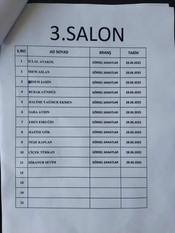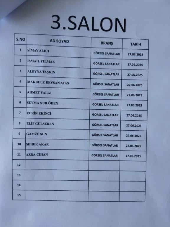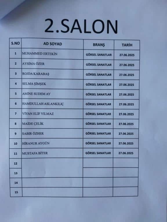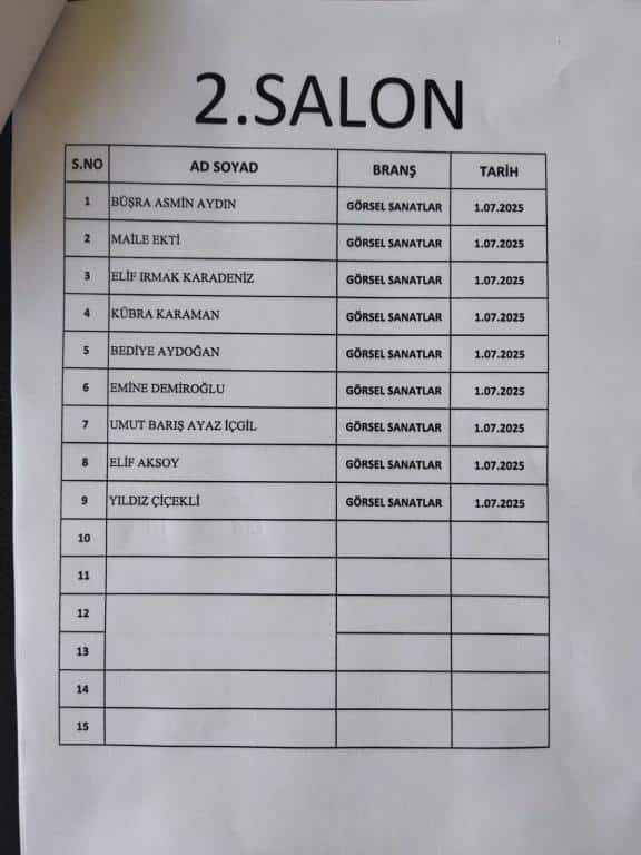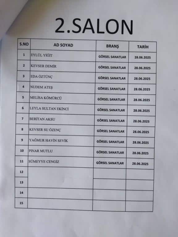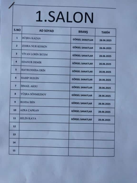 RESİM ALANINDA ÖZEL YETENEK SINAVINA GİRECEK ÖĞRENCİ LİSTESİ